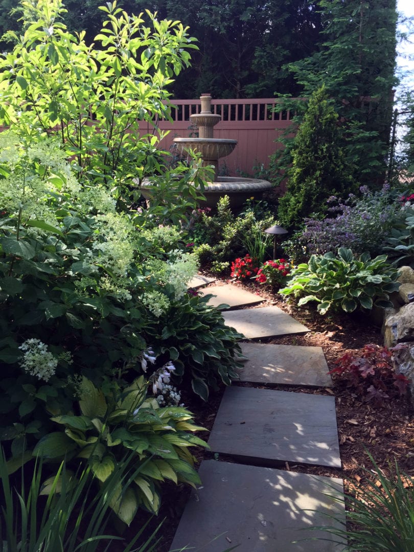 Before the renovation the house had many overgrown larger plants and shrubs which gave the home a closed-in look. Wiesner Bros. landscaping crew removed the overgrown vegetation. Soil was added and graded properly to allow proper water flow though-out the property. Pathways were created and contracted out through a trusted mason. Colors and materials were chosen carefully to compliment the residence while highlighting the landscape. Larger plants were then installed in accordance with the site plan.